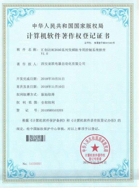 - 關(guān)于我們 - 資質(zhì)榮譽(yù) - 匯創(chuàng)達(dá)HCD500系列變頻柜專用控制系統(tǒng)軟件