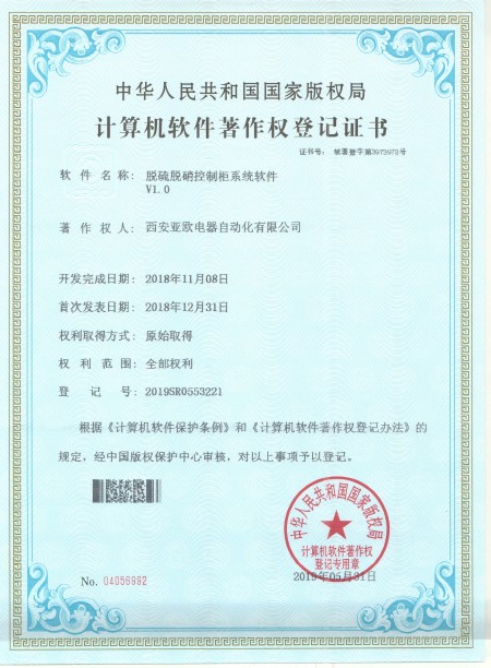 - 關于我們 - 資質(zhì)榮譽 - 脫硫脫硝控制柜系統(tǒng)軟件